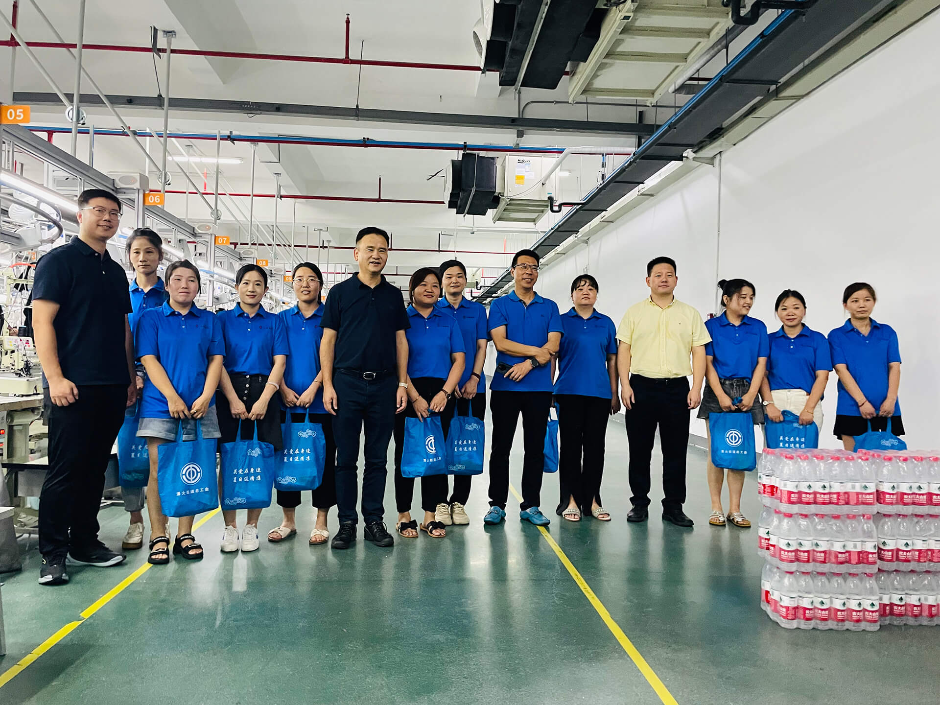 7月23日下午,鄞州区总工会党组书记、副主席邵英豪一行赴中哲服饰集团宁波数智化生产基地开展高温慰问活动。