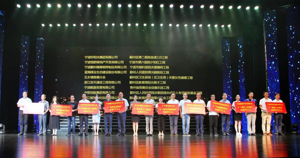 晚会现场,中哲控股集团有限公司荣获“慈善之光”荣誉称号,并在慈善项目认领举牌环节进行了资金捐助,用于宁波市鄞州区慈善总会“未成年人专项救助基金”。