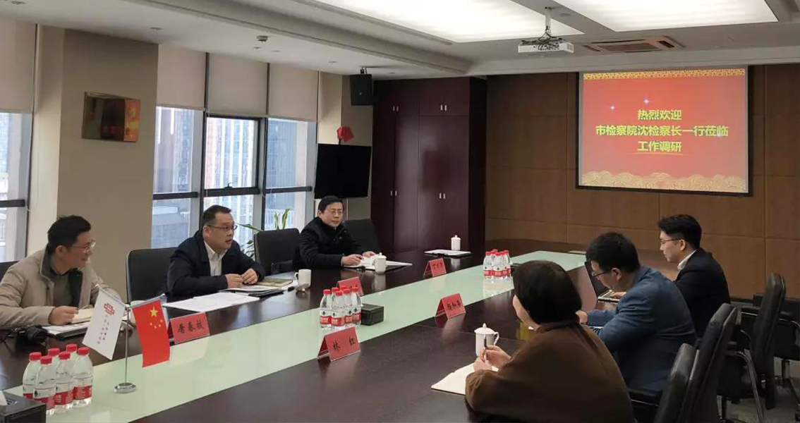 2018年2月9日,宁波市江北区委副书记、区长丁晓芳,江北区发改局局长张云、宁波电商经济创新园区副主任励成杰、宁波电商经济创新园区产发局副局长徐欣一行莅临中哲集团调研考察。中哲集团董事长杨和荣、副总裁周红绩、集团企管、行管中心总监林红接待丁区长一行。